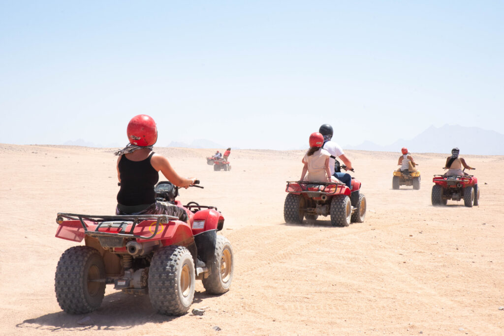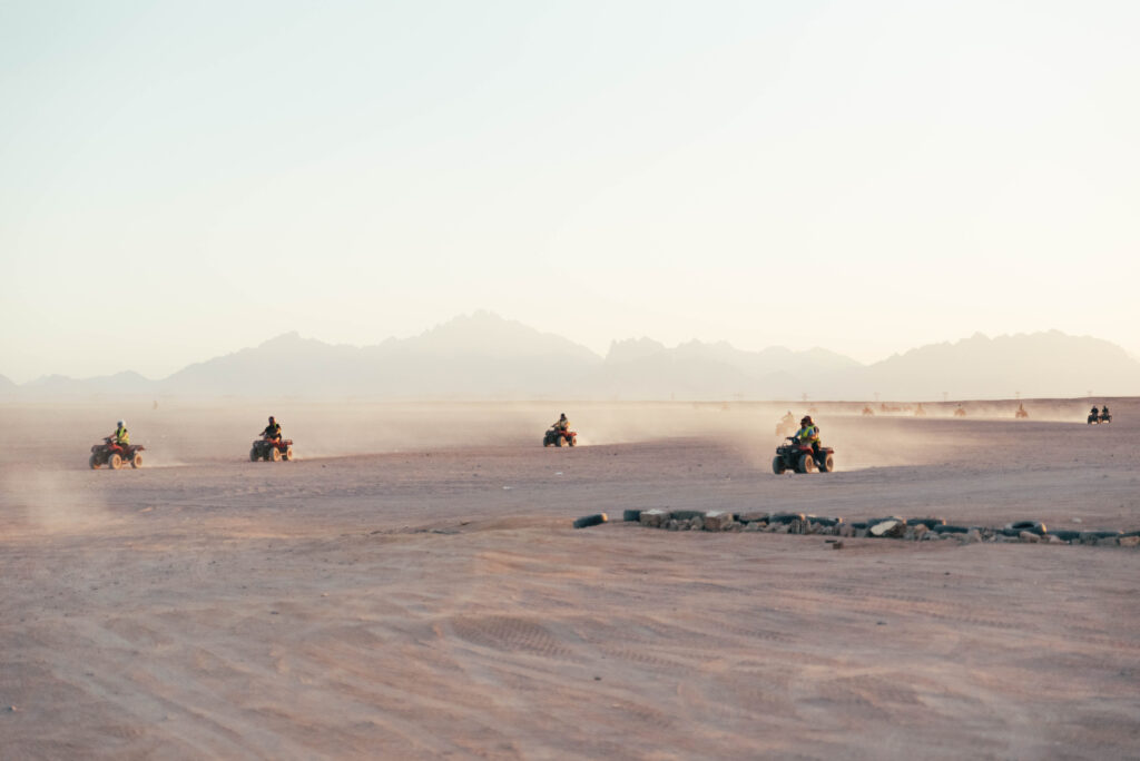 Lors de cette balade, profitez d’un arrêt au village bédouin pour partager un moment avec les habitants du désert. Dégustez un thé local et découvrez leur culture et leurs modes de vie avant de continuer votre balade en quad dans le désert et de finir sur un magnifique coucher du soleil en plein désert.