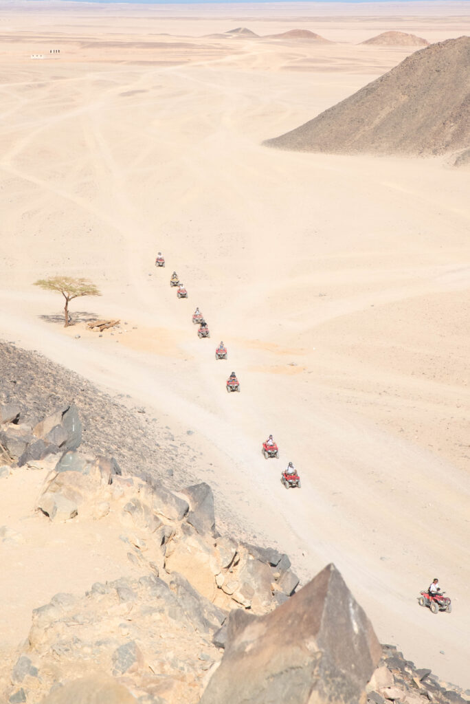 Accompagné d’un moniteur, rendez vous au milieu des dunes désertiques égyptiennes en quad.